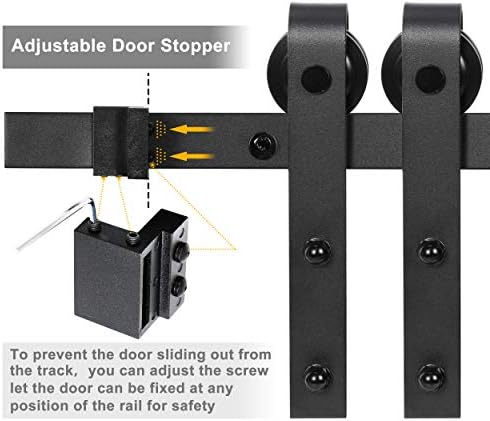 - 【Kit de herrajes para una sola puerta】Longitud del riel: 6.6 pies (2 piezas x 3.3 pies); capacidad de peso de la puerta: 220 libras; se adapta al ancho del panel de la puerta: 36 a 40 pulgadas, grosor del panel de la puerta: 1,37 a 1,57 pulgadas; el paquete contiene: 2 piezas x riel; 2 piezas x rodillo; 2 piezas x colgador de pared; 1 pieza x tope de puerta; 1 pieza x bloque antisalto Guía de suelo; 1 pieza x manual de montaje
