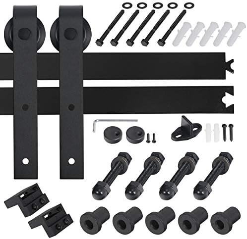 - 【Acero resistente y 100% seguro】Este kit de herrajes para puertas correderas de un solo carril de 6.6 pies está hecho de acero macizo y superficie acabada en laca negra que es impermeable y resistente a la oxidación, las poleas fuertes mantienen un balanceo suave y silencioso; alta Tornillos hexagonales resistentes de grado industrial capaces de soportar cargas de 220 libras, nunca tendrás que preocuparte por la seguridad de tu pared y puerta.
