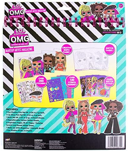 Learn how to strut fierce style and create your own buzz with the L.O.L. Surprise! O.M.G. Make-Up Artist Magazine! All four fabulous Glamazons — Royal Bee, Lady Diva, Delicious, and Swag — dish on their favorite fashion tips so you can create fierce, fashionable, and flawless looks. Complete with 9 pretend play eyeshadows, 4 lip glosses, blush, crayons, and stencils, this set includes everything you need to slay the runway with the O.M.G. Sisters! Use the included stencils to color in make-up designs, then apply eyeshadow to shine bright like city lights. Mix and match colors to create fashion-forward hairstyles, then bling it on with statement stickers and scratch-off surprises to complete your look — go bold, BAE! Use the 4 magazine pages for creative inspiration or make your own fierce styles! NOTE: Make-up is not intended for human faces, but for coloring purposes only. Please keep makeup on coloring pages only. Recommended for make-up lovers and fashionistas ages 6 years and up.