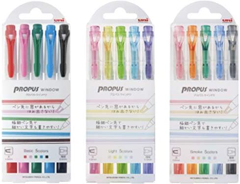 Juego de 15 colores de iluminador Mitsubishi Uni PROPUS WINDOW. 5 colores básicos y 5 colores claros y 5 colores ahumados con estuche original