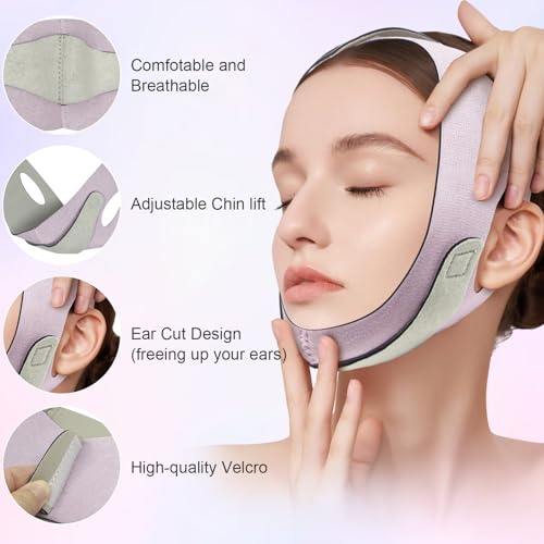 - 【Design and Material Upgrades】The face-lifting belt is made of soft, breathable, skin-friendly, and elastic. With cheek double velcro, the adjustable design makes it easy to adjust the tightness, You can make it fitter to your face based on your face's fine-tuning.