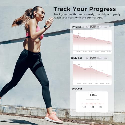 - TRACK YOUR PROGRESS: Set your health goals with the YUNMAI App, track your progress weekly, monthly, and yearly with this smart scale, and get detailed analysis reports of your body data, empowering you to make smart decisions based on your evolving health trends.