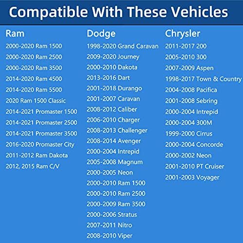 - 【COMPATIBLE WITH DODGE & CHRYSLER】Gas Cap/ Fuel Cap Compatible With Dodge Ram 1500 2500 3500 | 2008-2014 Avenger | 1998-2021 Grand Caravan | 2009-2021 Journey | 2001-2007 Caravan | 2008-2012 Caliber | 2006-2010 Charger | 08-13 Challenger | 2000-2010 Dakota | 13-16 Dart | 01-18 Durango | 2000-2004 Intrepid | 2005-2008 Magnum | 2000-2005 Neon | 2007-2011 Nitro & Compatible With Chrysler 200 300 | 2007-2009 Aspen | 1998-2017 Town And Country | 2004-2008 Pacifica | 2001-2008 Sebring And More.