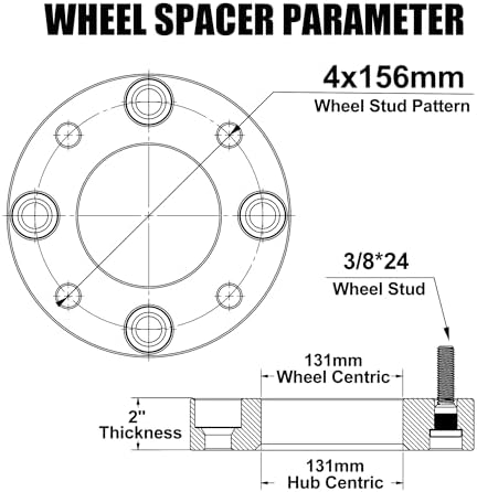 - 【Detailed Parameter】--- 4PCS 2" Thickness |4x156 Bolt Pattern | 131 mm Hub Bore | 3/8-24 Threaded Studs