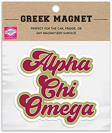 Sorority Shop Alpha Chi Omega Car Magnet — Retro Design- Set of 2 - Removable No Residue All Weather Magnets, ACO Sorority Gifts, Alpha Chi Omega Gifts for Women