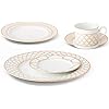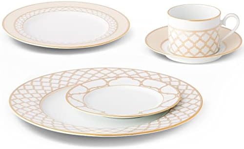 - Includes 1 each: dinner plate, salad plate, bread plate, tea cup, saucer