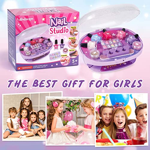 Golray Kids Polish de Uñas Set para Niñas, Kit de Arte de Uñas Todo en Uno - Secador/ Polvo de Brillo/ Uñas Postizas/ Decals de Uñas/ Separador de Dedos/ Lija, Regalo de Juguetes para Niñas de 3-12 años