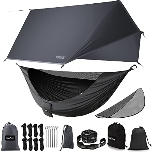 Sunyear Camping Hammock with Rain Fly and Removable No See-Um Net - Outdoor Hammock Accessories-Hammock Tent for Outside-Keep Side Wind&Rain-Large and Heavy Duty