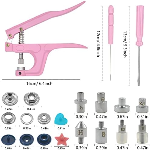 - Fácil de usar: 3 matrices de repuesto de plástico son adecuadas para botones de broche de resina plástico T3, T5, T8. El destornillador es conveniente para cambiar las diferentes matrices. El punzón es fácil de perforar un agujero en el material. Solo toma unos segundos instalar un broche. Simplemente coloca una hebilla y un botón macho y presiona con tus pinzas de broche. Repite para el botón hembra.