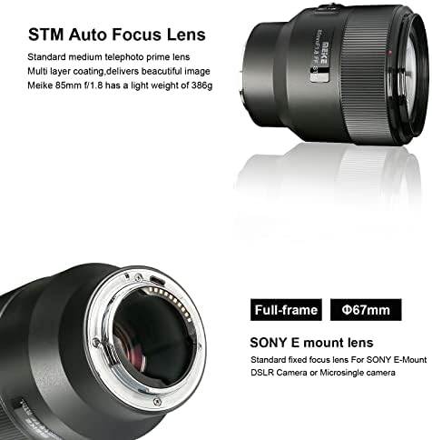 Lente Meike 85mm F1.8 Full Frame AF STM (Motor Paso a Paso) Gran Apertura Autofoco Teleobjetivo Fijo Prime para Retrato para Cámaras Sin Espejo de Montura E Sony A9 A7III A7II A7 A7R3 A7R4