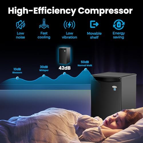 roomwell E-Star 3.3 Cu Ft Mini Fridge without Freezer - AUTO DEFROST, Reversible Single Door, Glass Shelf Refrigerator - A Space-Saving Marvel for Your Bedroom, Dorm, and Office