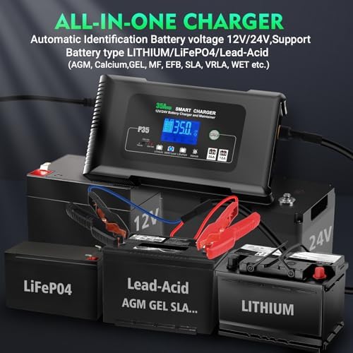 Battery Charger 0-35A,12V/24V Lithium Battery Charger for LiFePO4,Lead Acid,AGM,RV,Marine,Boat, and Deep Cycle Batteries,9 Stage with Pulse Repair,Smart Car Trickle Charger & Maintainer