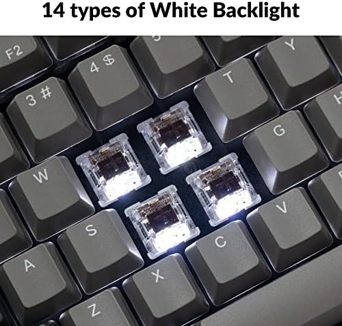 - White Backlit: The south-facing White LED designs to better illuminate the keyboard backlight from the typist’s angle with the premium non-shine-through PBT keycaps installed. The backlight is also free from interference when the users install Cherry-profile alternative keycaps on the keyboard. Also, it comes with 14+ types of white light in different styles (flashing, breathing, static, etc.) to match your mood.
