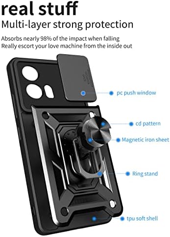 Funda para Motorola Moto Edge 30 Fusion | Funda para Moto Edge 30 Fusion | Funda protectora de doble capa a prueba de golpes | Cubierta con protector de lente de cámara incorporado y soporte de pie de dedo con anillo *-* Negro