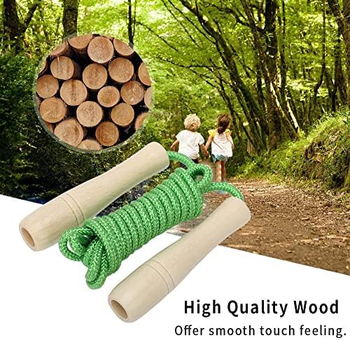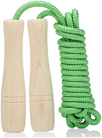 This 8.5ft jump rope kids is designed for boys and girls, it's a good way to encourage kids to get outside and begin to develop healthy habits at a young age. The benefits of skipping: ① Skipping on the body's sensitivity, physical posture, balance, coordination and flexibility have a good role in promoting. It is beneficial to development, especially lower limb strength. ② Regular skipping can help children grow taller. ③ Skipping is an effective and economical way to burn fat. Product Details: Material: cotton rope + wood handle Total Length: 8.5ft/2.6m Rope Color: green. Package included: