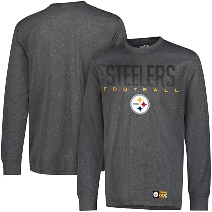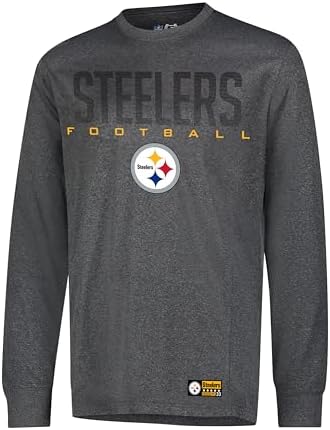 Ultra Game NFL Official Adults Super Soft Game Day Long Sleeve T-Shirt - Unisex, Pittsburgh Steelers, Heather Charcoal, Medium
