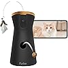 • PLAY USING TREATS & NEW FEATHER WAND - Toss a treat to your cat via the free Furbo iOS/Android app. Satisfy their natural hunting instinct with the detachable feather wand toy. Fill Furbo with your cat’s favorite treats to use as a reward, or as a distraction for symptoms of separation anxiety like meowing or licking. Keep your cat entertained all day and all night with the feather cat toy and pet camera treat dispenser.