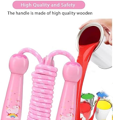 Jump Rope for Kids, Adjustable Toddler Jump Rope with Wooden Handle and Cotton Rope, Cute Skipping Rope for Boys and Girls Fitness Workout Exercise 8.5 Ft(Pink)