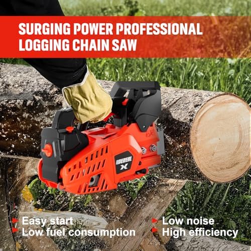 - 【Reliable and Fuel-Efficient】: This gas chainsaw packs a punch with its power-to-weight ratio. It’s got 0.9 kW of power, 1.2 HP, and can hit speeds up to 11,000 RPM. It also uses fuel smartly, thanks to its precision carburetor. You get great performance without guzzling gas.