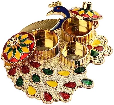 - Package Contains: 1 Pc Decorative Multicolor Peacock Shape Kankavati Tika Roli Chawal Holder. Each Holder Comes with Premium Packaging.
