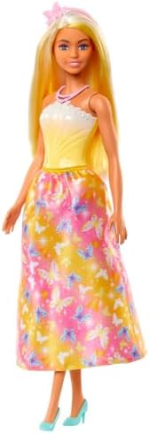 Barbie Royal Doll with Brightly Highlighted Fantasy Hair, Colorful Accessories, Yellow Ombre Bodice & Butterfly-Print Skirt