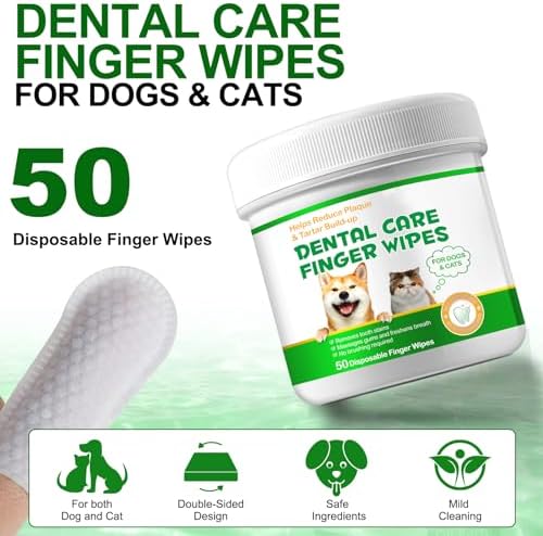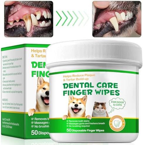 Dog Teeth Cleaning Wipes 50PCS, Dog Dental Care Wipes, Dog Tooth Brushing Kit Dental Wipes, Plaque Tartar Off Wipes for Dogs, Dog Breath Freshener Toothbrush Dental Cleaning Finger Wipes