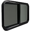 RV Window, Horizontal Sliding, Black, Tempered Glass, Aluminum Frame, RV Compatible, Passenger Side, 32" W x 20" H, with Trim Kit