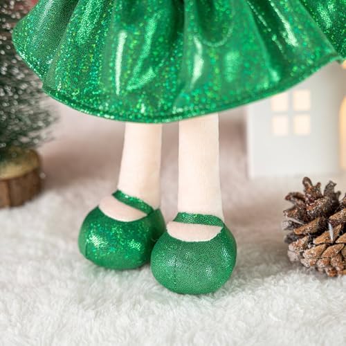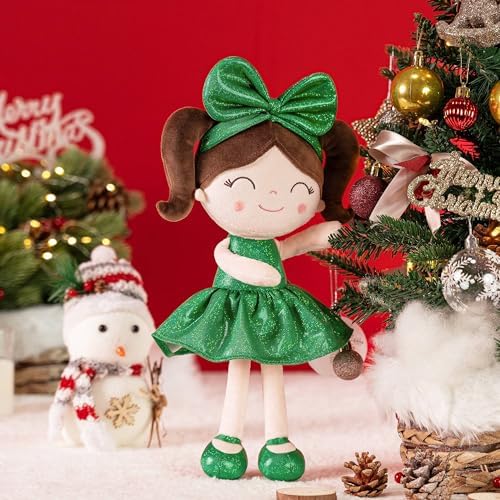 Gloveleya Christmas Baby Doll – Soft Plush Girl Toy in Green Dress, Doll for Kids, Xmas Décor & Keepsake