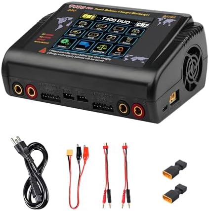 Dual Channel RC Lipo Battery Charger with Touchscreen LCD – 200W AC/400W DC, 12A×2 Fast Charging, Smart Balance Charger for LiPo/LiHV/Life/Pb/NiCd/NiMH/Smart Batteries (1S-6S)