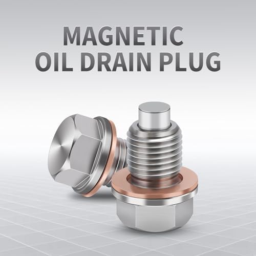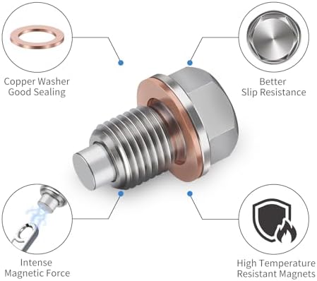 M14x1.5 Stainless Steel Magnetic Engine Oil Drain Plug with Copper Replacement for Ford, GM, Hyundai, KIA and Accord, CRV, Civic, Pilot, Fit, Odyssey(silver)