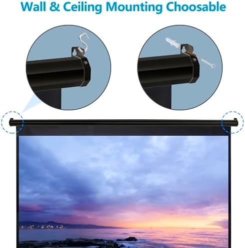 - 【Premium Screen Material】 Our screen boasts a 1.1 gain and standard black backing to eliminate light penetration. The four side black borders enhance picture contrast, ensuring a crisp and vibrant display. Cleaning is hassle-free – simply wipe the screen surface with mild soap and water.