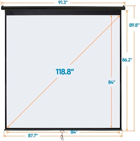 - 【Immersive 120-Inch Diagonal Screen】Our Projector Screen immerse yourself in a premium visual experience with our 120-inch diagonal screen offering a generous 89.8 x 87.7-inch screen area. With a 1:1 aspect ratio and 1.1 gain, it ensures optimal image and color reproduction for a perfect viewing experience.