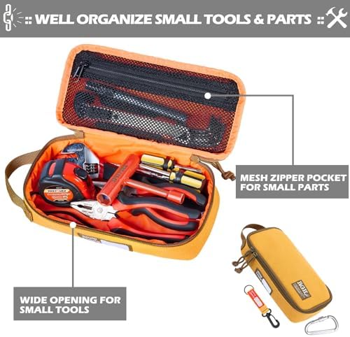 - Functional Inside Compartments: The small tool bag pouch features a wide opening with a large zipper compartment for large items like multimeter and a mesh zippered pocket for smaller items, allowing you to customize storage for your specific needs