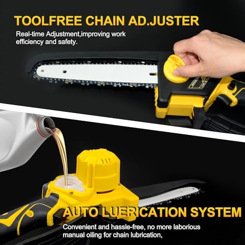 - 【Compact Cordless Power for Effortless Cutting】Experience ultimate portability with our 8-inch mini chainsaw cordless design, weighing 40% less than traditional saws. The battery powered chainsaw system delivers 6500RPM cutting power to slice through 8-inch logs in seconds - perfect for pruning branches, trimming hedges, and firewood preparation.
