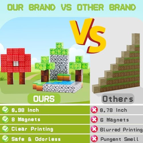 - 100PCS OVERSIZED SET OF MAGNETIC TOYS: The Magnetic Blocks Forest Worlds set offers rich patterns to make your building art more vivid and realistic than simple solid color squares, and kids will have everything they need to decorate their little castles or red brick cities. Unleash kids' creativity and enjoy hours of role-playing fun!