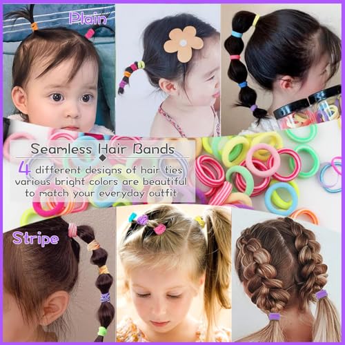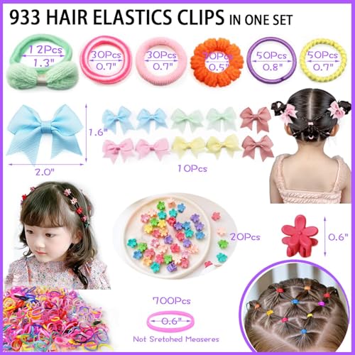 933Pcs+ Baby Girls Hair Ties Seamless Cotton Elastics Hair Bands Colorful Mini Rubber Tie Bow Hair Clips Flower Claws Assorted Ponytail Holders Soft for Thin Hair Braids Kids Toddler Little One