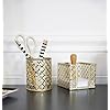 BLU MONACO Gold Pen Holder for Desk - Gold Pen & Pencil Cup - Brush Holder with Metal Circular Design