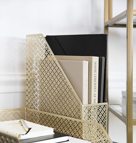 BLU MONACO Gold Magazine File Holder – Decorative Metal Magazine Organizer for Desk, Shelves & Office – Vertical Book Holder, File Storage Bin & Paper Organizer – Stylish Gold Office & Home Décor