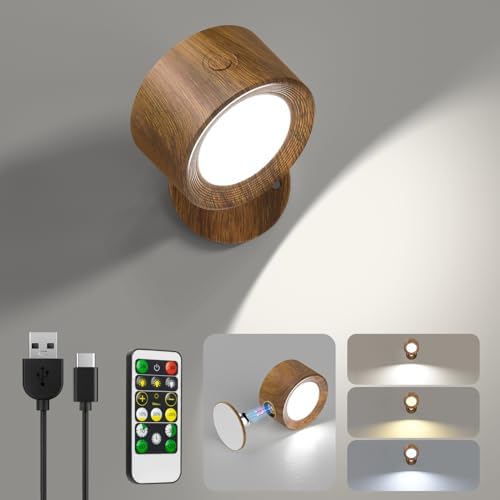 Lightbiz LED Wall Lights, Wall Sconces with Remote Rechargeable Battery Operated, 3 Color Temperatures & Dimmable Wall Lamp Magnetic 360° Rotation Light for Bedroom Living Room
