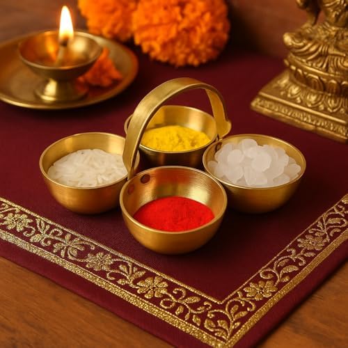 • This Brass Chowmukh roli chawal elaichi mishri 4 Bowl is best suitable for pooja.