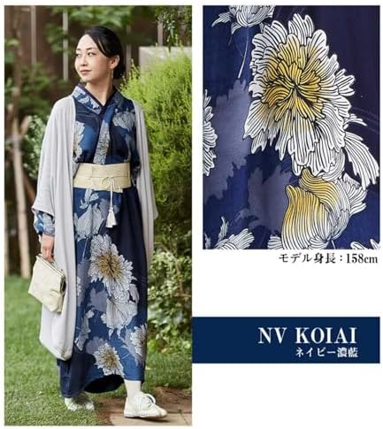 [倭物や Kaya] KIMONO One-piece Dress HANA IKADA - Flowers like Rafts/Japanese Casual Dress 7IA-2104 NAVY