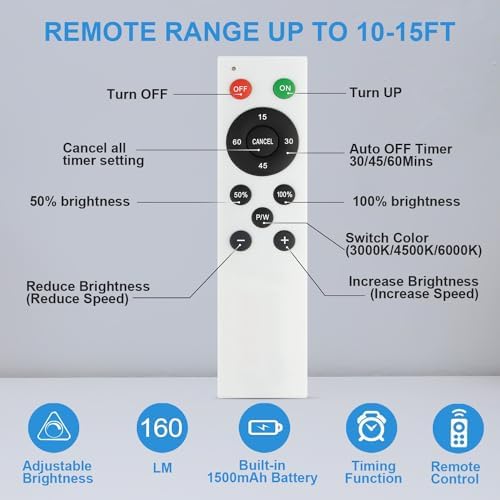 - Two Control Methods: Motion Sensor: They detect the motion of human in the dark, automatically open within 10ft/120°, automatically shut down after about 20 seconds after no motion is detected. Remote: ON/OFF, 10 level brightness, 3 Color Temperatures, timer function. You can use remote easily control and adjust any lighting mode (NOTE: The remote control can only be used in "ON" mode).