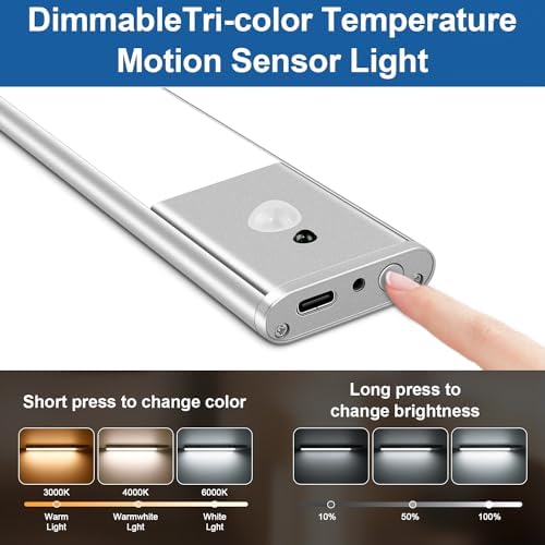 - 2024 Upgrade Under Cabinet Lights : Our Under Cabinet Lights is aluminum alloy shell, sturdy and durable, wireless and easy to install.64 LED motion sensor lights, 3 Color Temperatures and 10 Levels of brightness.With a higher 300 lumen rating, it easily illuminates a large area.Glare-free and uniform lighting design, bright and eye-friendly.