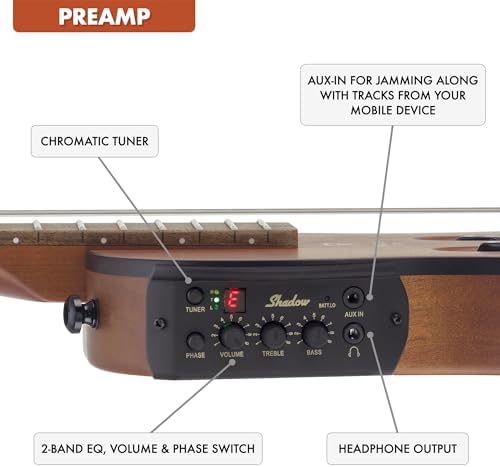 - UNMATCHED FEATURES: Equipped with an under saddle acoustic piezo pickup, a custom onboard headphone amp, built-in tuner, 2-band EQ, and aux-in to jam with backing tracks. Mahogany body and black walnut fingerboard.