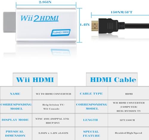 wii to hdmi Adapter 1080P with Audio Jack,Compatible with Wii, Wii U, HDTV,5ft HDMI Cable, Connect Converter to wii Console, Wii All Display Modes 720P, NTS
