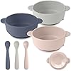 Silicone Baby Feeding Set, 3 Pack Baby Bowls with Suction and 3 Pack Baby Spoons for Babies Toddlers Kids, BPA Free, Baby Utensils Feeding Supplies, Microwave and Dishwasher Safe