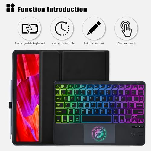 Touchpad Keyboard Case for Amazon fire Max 11 11.0-inch 2023(13th Generation),Rainbow Backlight Rechargeable Detachable Keyboard with Pen Holder for Tablet Cover (Black+Black)