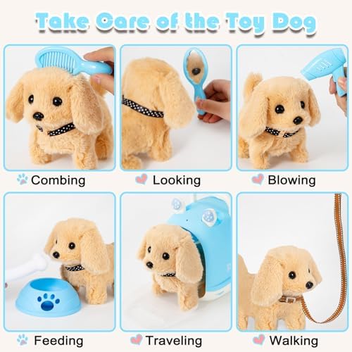 Dog Toys for Kids Girls, Walking and Barking Electronic Interactive Plush Puppy Toy Set and Pet Care Toy Set Accessories, Pretend Playset for Toddlers, Girl Role Play Gift for 3 4 5 6 Year Old