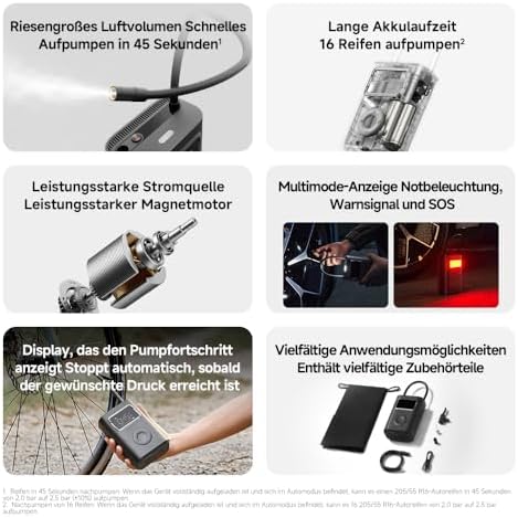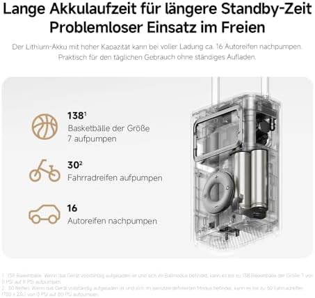 - 【Long Battery Life for Extended Standby Time】Fully charged, the high-capacity lithium battery can inflate about 16 car tires. Convenient for daily use without frequent charging.