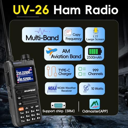- Baofeng 5rm New Version: The Baofeng UV-26 Ham Radio outperforms legacy models like the Baofeng UV-5R with upgraded 𝟏𝟎𝐖 transmission power,𝟏.𝟕𝟕-inch color screen, 𝐀viation band, frequency copy, 𝐓ype-𝐂 charging, 𝟗𝟗𝟗 channels and more. Perfect for both beginners and ham radio enthusiasts, this device ensures reliable communication in any situation.